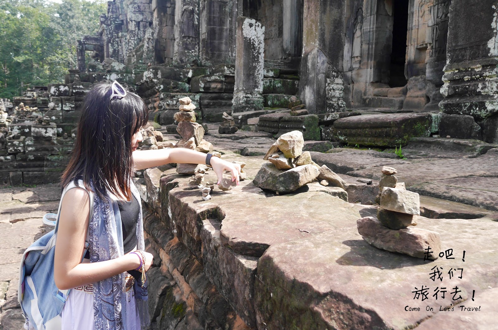 不经意地在巴戎寺某处发现了几个小孩把石头堆起来,在好奇心驱使之下,询问了小朋友方才得知这是一种许愿的方式。看着小朋友天真无邪的笑容,希望他们的愿望能够达成。
